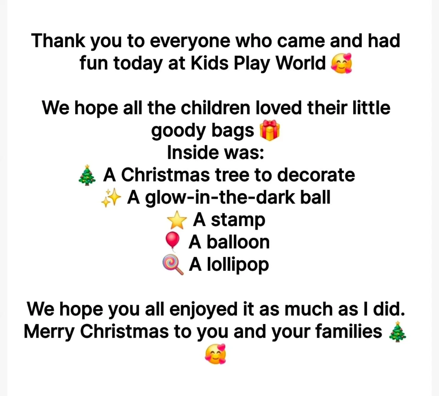 Thank you for helping us keep Kids Play World clean, safe & fun for everyone!